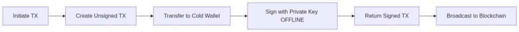 A cold wallet secures your funds by keeping the private key isolated from any internet-connected device at all times. When you need to send crypto, the transaction is signed offline — inside the cold wallet — and only the signed transaction is then broadcast to the blockchain from a separate, connected device. The private key itself never goes near a network.