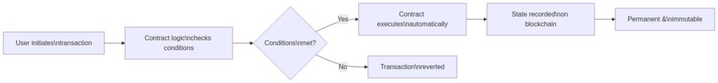 The “smart” part doesn’t mean the contract is intelligent. It means it’s programmable and automatic. The “contract” part is somewhat misleading too, at least legally (more on that later). The actual function is simpler: encode agreement terms in code, deploy to a blockchain, and it runs exactly as written — without anyone’s permission, and without anyone being able to stop it.